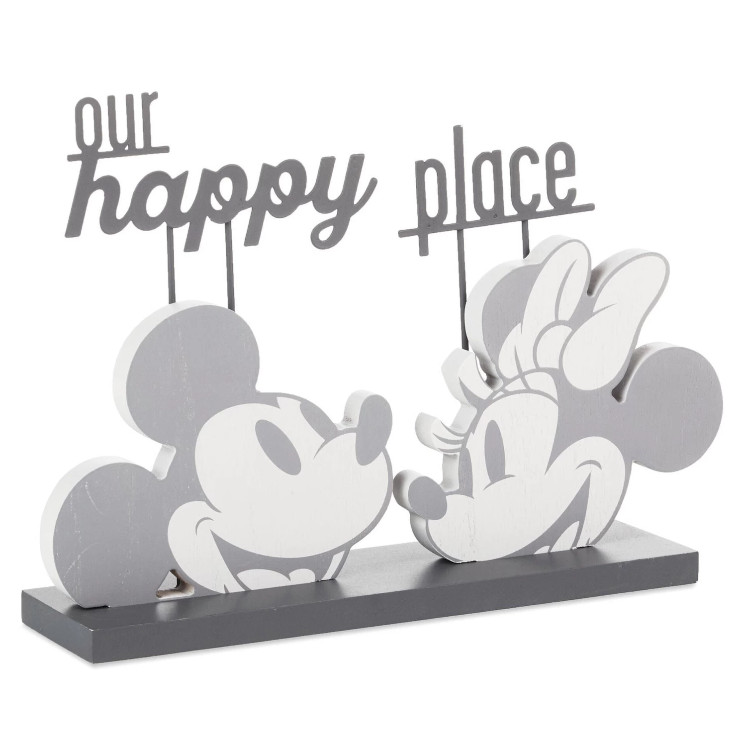 Decorate your home with Disney sweethearts, Mickey and Minnie. This charming wood and metal decoration featuring the iconic pair’s smiling faces is perfect for adding to a mantel, bookshelf or table as a reminder that your home, and your family, is where your happy place will always be. This Disney home decor makes a great gift idea for a wedding, anniversary or birthday.