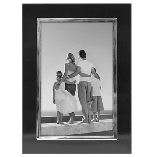 Display cherished memories in this sophisticated 2-tone contrasting black frame which features a raised silver border and polished finish. It is hardboard backed with easel for portrait or landscape display. .