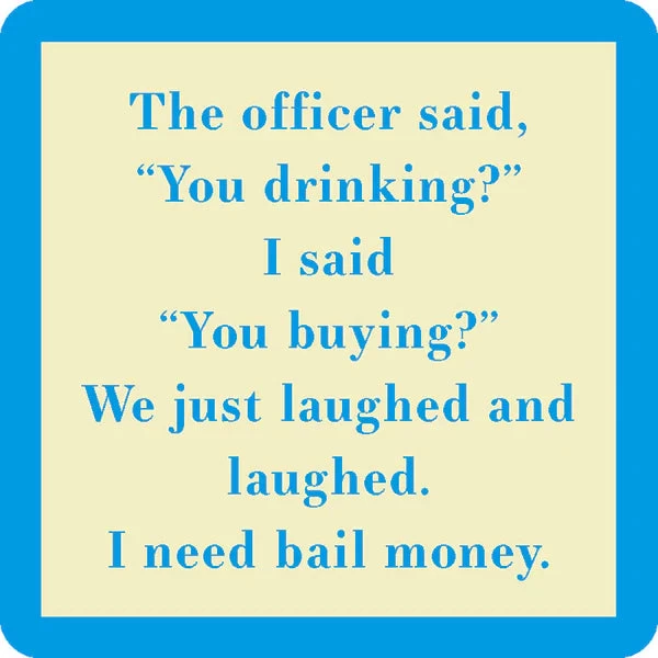 “The officer said ‘You drinking?’ I said ‘You buying?’ We just laughed and laughed. I need bail money.”